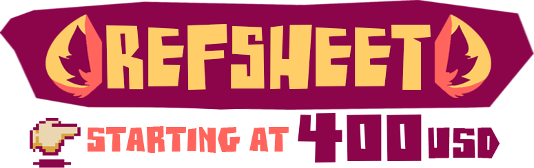 For this type of commission, the base price (400USD) comes with front and back view and two headshots. The price may vary depending on what the commissioner requests, including modifications to an existing character, content, or creating a character from scratch. For this, please send me an email to [email protected] with all the details or just send it to the form, then I will give the price for the requested refsheet